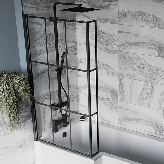 Arezzo Shower Bath - 1700mm L Shaped with Matt Black Grid Screen + Panel