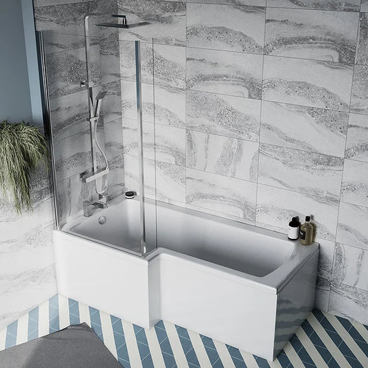 Milan Shower Bath - 1700mm L Shaped with Screen + Panel
